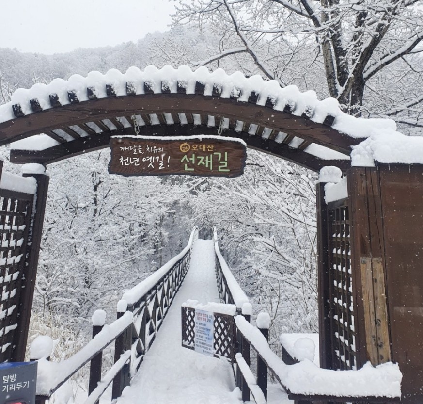 강원도 평창군에 위치한 오대산 선재길은 월정사에서 상원사까지 9km에 숲길 되어있으며 입, 평지라 걷기 어렵지 않은 코스로, 사계절 내내 아름다운 곳입니다. 아름드리 전나무로 둘러싸인 오대산 선재길은 사객의 길, 구도의 길로 불릴 만큼 고즈넉한 분위기를 자아내는 곳.. 눈이 쌓여 사방이 하얗게 뒤덮이니 그 분위가 가 한층 더 아름다운 것 같습니다. 이곳은 드라마 "도깨비"의 촬영지로도 유명한 곳이니 가족과 함께 1월 여행하기 좋은곳으로 가보셔도 될 것 같네요.