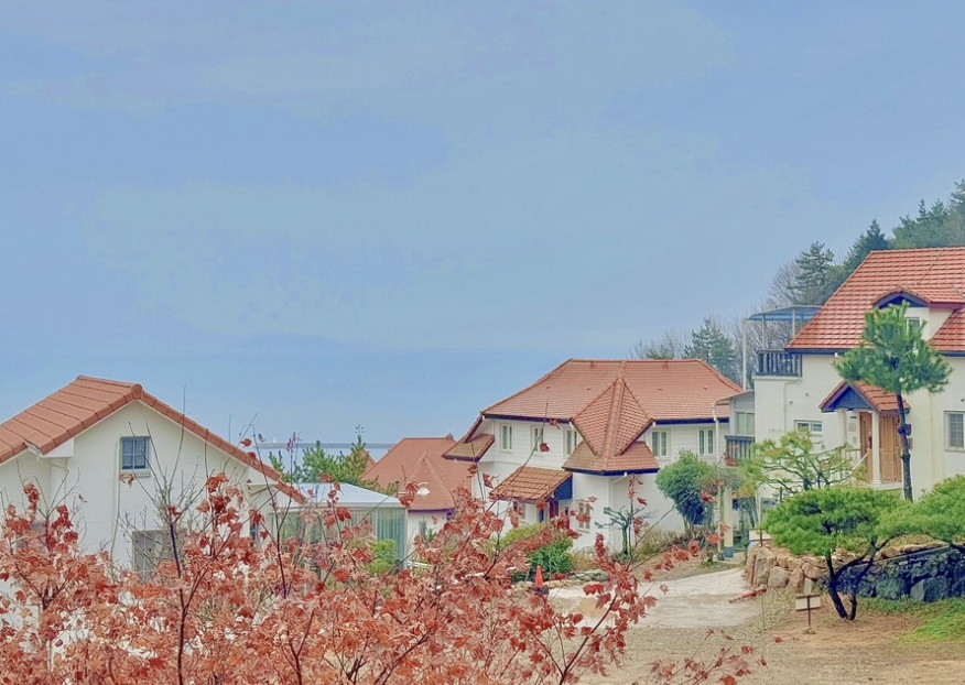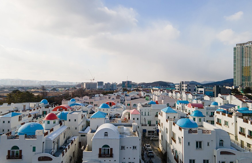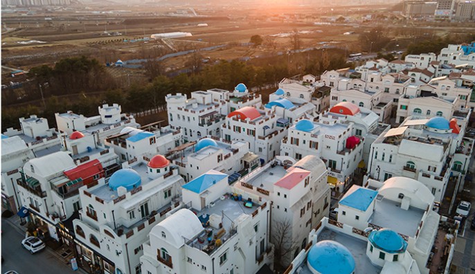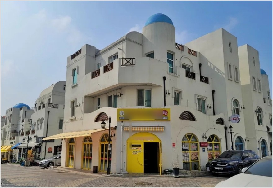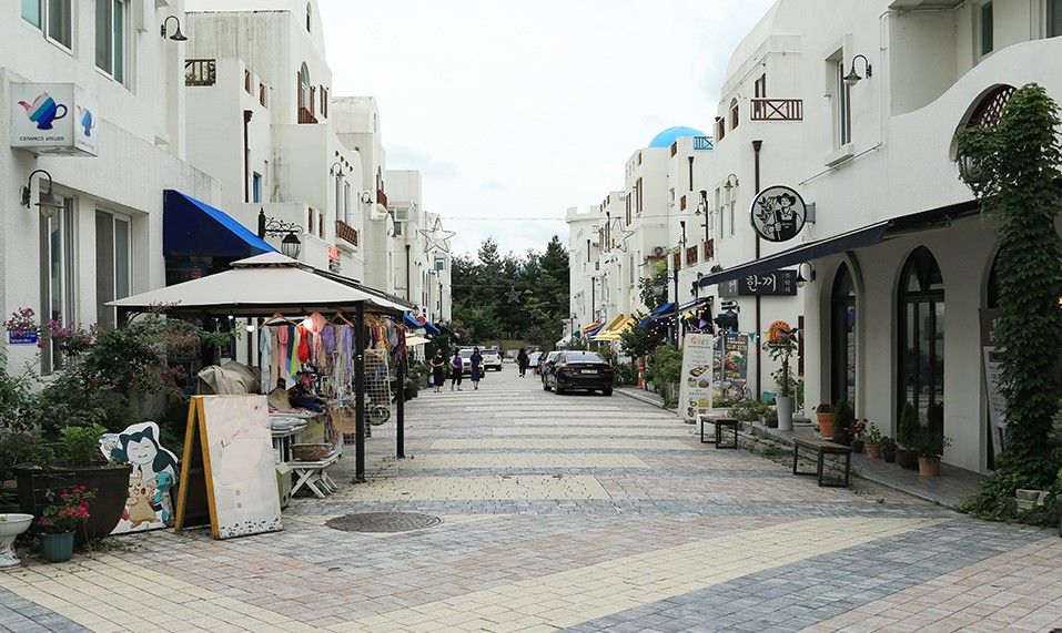 천안 아산에 위치한 지중해마을은 하얀 벽면에 파란 지붕의 건물들이 66동으로 이뤄져 있으며, 각동 1층은 음식점, 카페, 상점 등으로 운영되고 있고 2층은 공방이나 전시 체험공간, 3층은 마을 주민들의 주거 공간으로 이루어져 있다고 합니다.