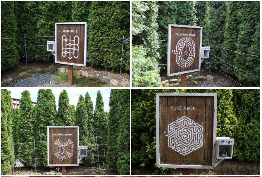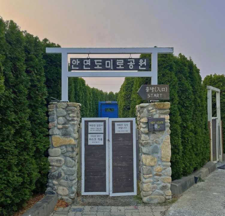충청남도 태안군 고남면에 위치한 세계적인 미로 디자이너 Adrian Fisher이 디자인했다는 안면도 미로공원 안에는 "미", "로", "공", "원"이라는 글자의 도장이 있습니다. 미로 안에는 12개의 문이 있는데, 매일 열리는 문과 닫히는 문이 달라집니다. 매일 미로 유형이 달라지기 때문에 매일 다른 미로를 탈출하게 됩니다. 이날의 미로 유형은 카페 내부와 미로공원 입구에 표시되어 있으며, 4개의 도장을 모두 찍고, 출구로 무사히 나오면 미션 성공입니다. 아이들이 좋아할 것 같네요. 추억에 남는 여행지 태안군 바람아래관광농원을 추천합니다.