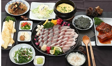 -겨울 제철 해산물: 낙지탕탕이, 간자미회무침, 삼치회