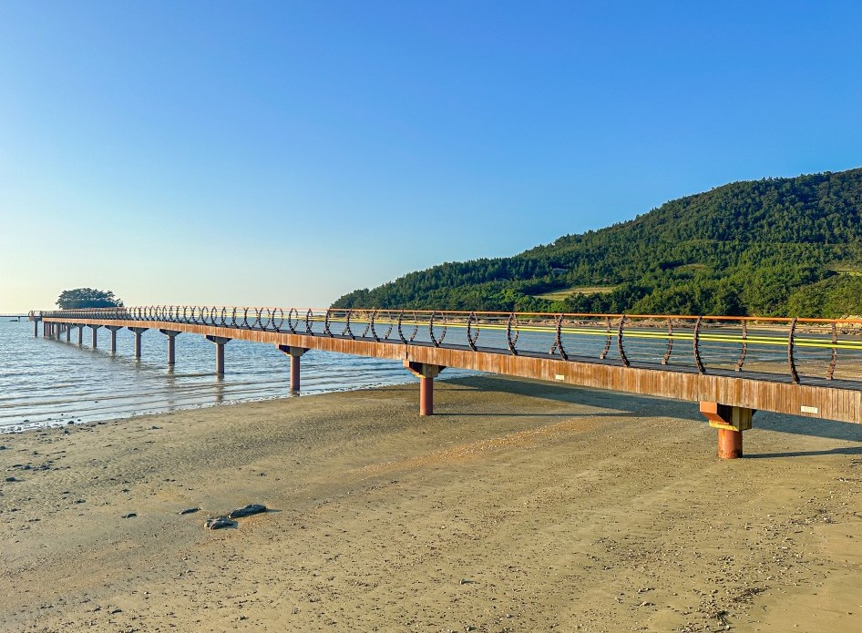전라남도 신안에서 요즘 핫한 곳으로 암태도의 기둥삼거리에 그려진 동백나무 할머니 할아버지 벽화입니다. 삼거리에 있어서 좀 위험하긴 하지만 평상시에 차가 많이 지나가지 않아 멋진 추억을 남기기에 좋은 곳이며 무한의 다리는 무한대로 끊임없이 이어지는 느낌이라 8월 8일 섬의 날을 기념하고 섬과 섬이 이어진다는 뜻에서 무한의 다리라고 합니다. 여름이 다가오는 이 계절 5월 6월 여행하기 좋은 곳으로 추천합니다.