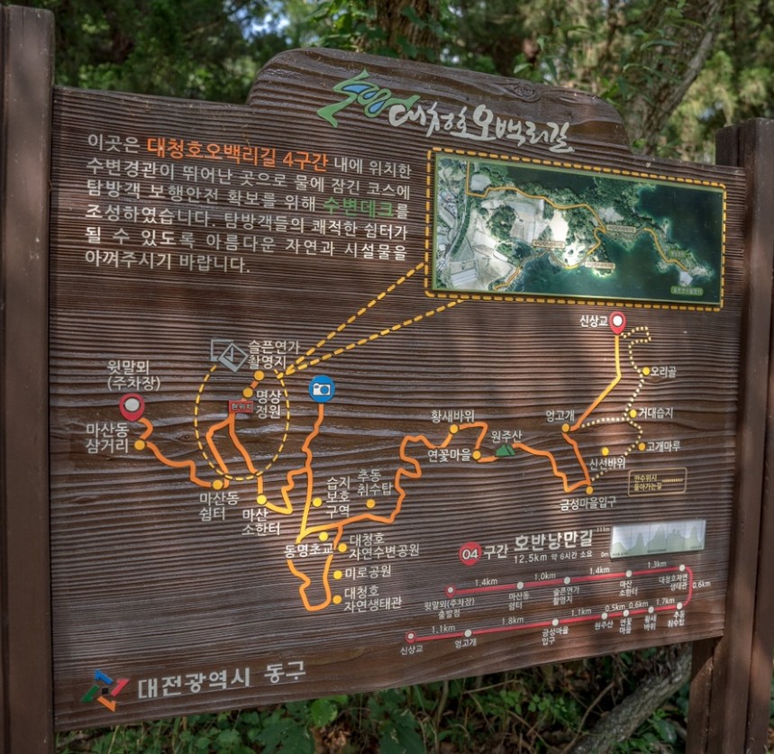 대전 대청호는 한국에서 3번째로 큰 호수로 1980년에 완공되었습니다. 그리고 "슬픈 연가" 드라마 촬영지로 유명한 곳이기도 합니다. 이곳 대청호는 원하는 구간을 선택해서 넉넉히 1시간, 2시간 정도 여유롭게 산책하기 좋은 곳으로 곳곳에 포토스이 있으니 이쁜 추억을 만들어 볼 수 있은 곳으로 5월, 6월 여행하기 좋은 곳으로 추천합니다.